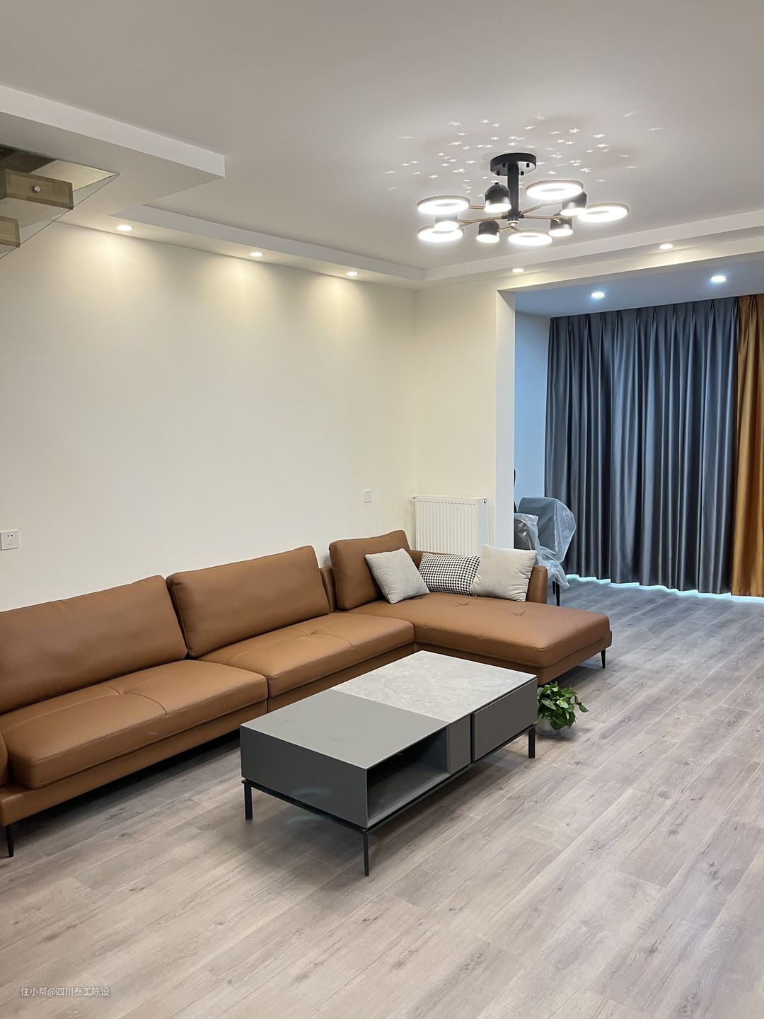 地面采用实木地板通铺客厅与阳台,大气又通透。而且阳台与客厅之间的门洞有被打大,可以增加室内自然光。窗户难得没有选择组合式落地窗,而是用了最为美观却不好打扫的全封闭式落地窗,视觉效果还很好。