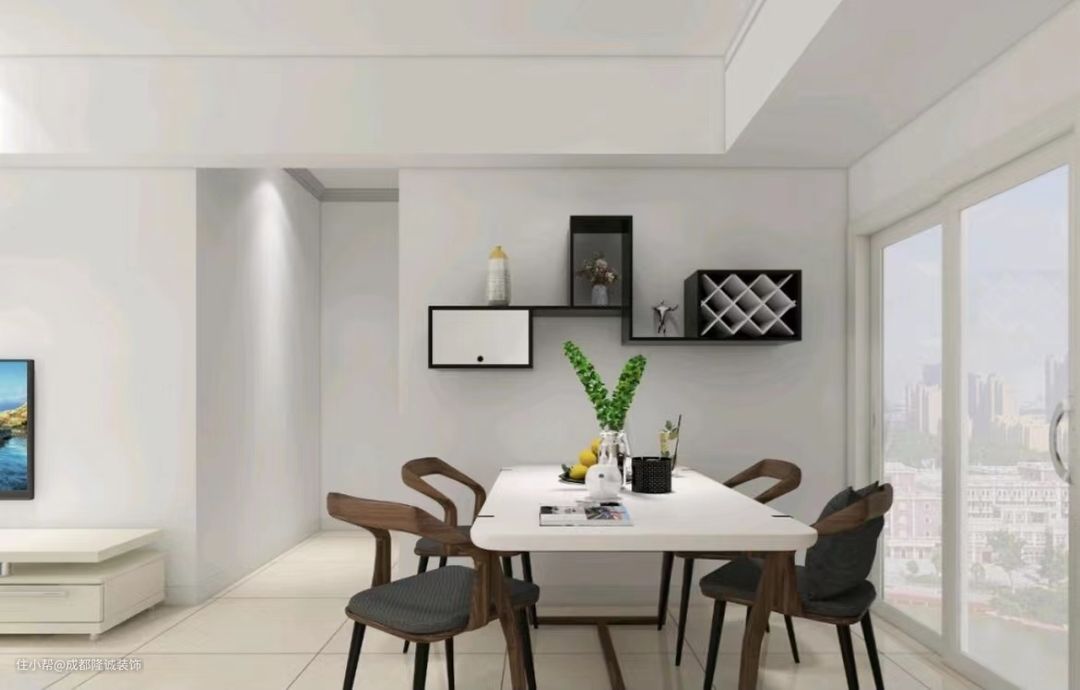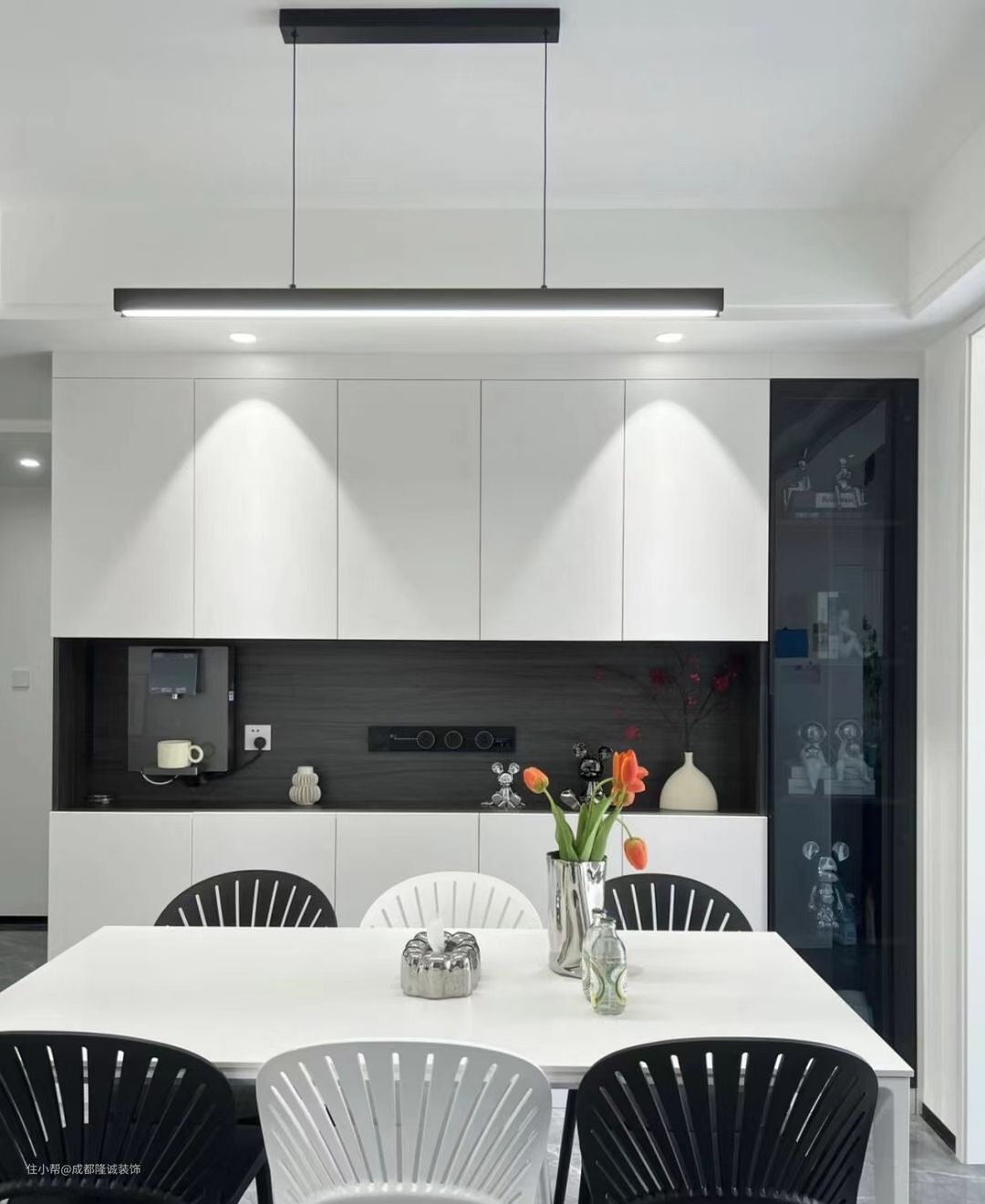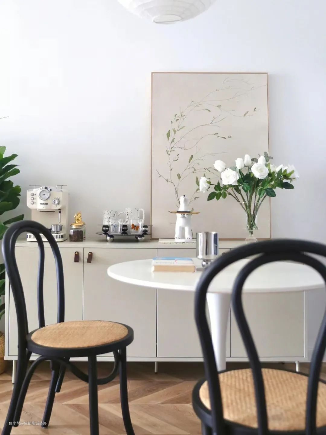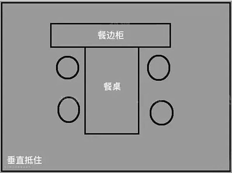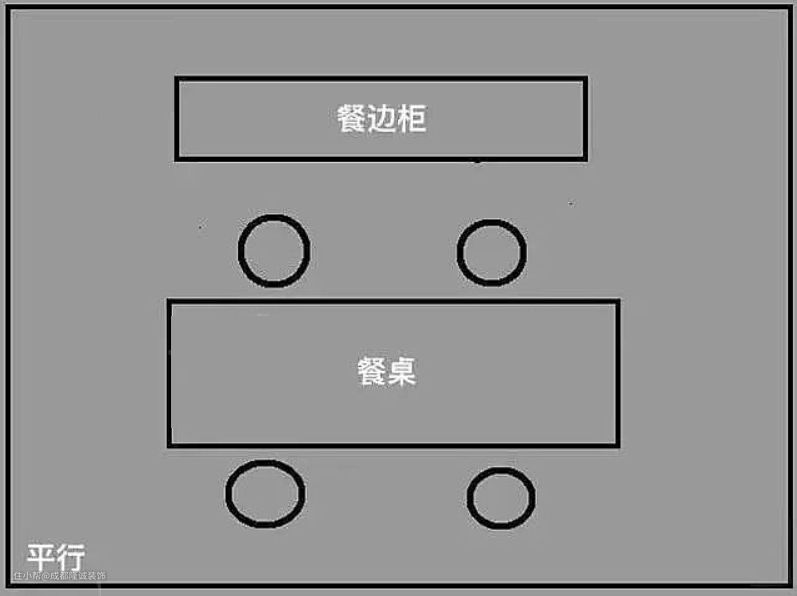 餐桌与餐边柜平行摆放是现在最常见的一种餐厅布局方式,适用性广泛。