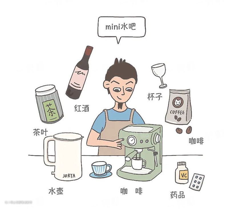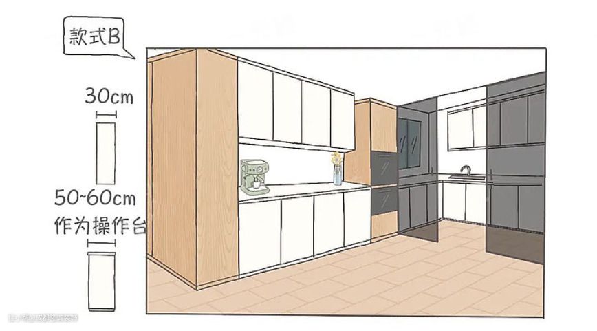 - 除了操作台,可在留开放格放置水壶、茶具,高度在35cm即可,不常用的物品,高度建议45cm;