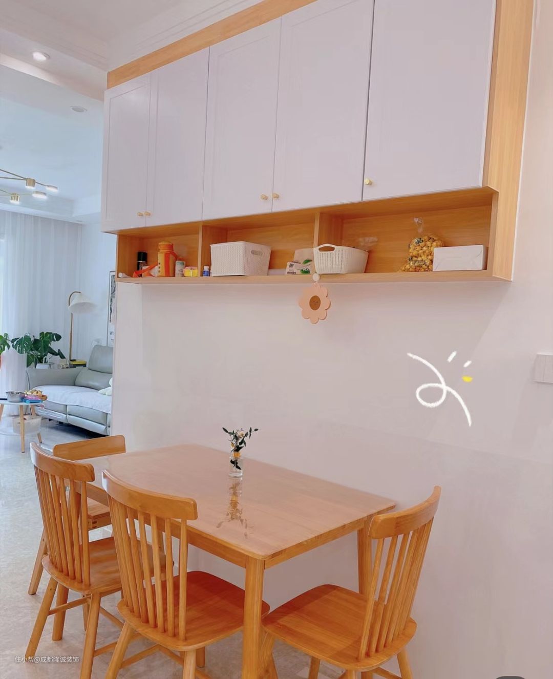 吊柜适合面积小,需要一定储物、展示功能的餐厅,利用墙面空间设置吊柜,不占用地面空间,还能更显立体感;