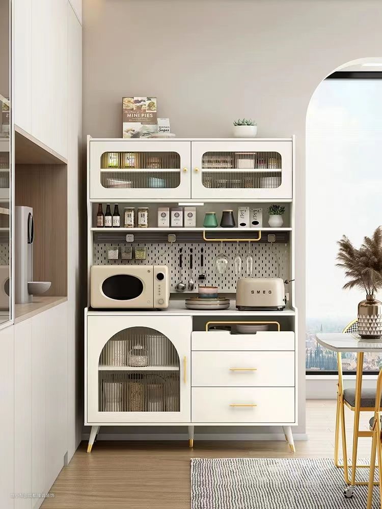 当厨房面积足够且餐边柜不需要承担很多收纳功能,以美观好看为优先目标,就可以选择独立地柜,便移动,随意变换位置,样式简单美观,根据不同色彩和风格,可以凸显主人的审美和品味;