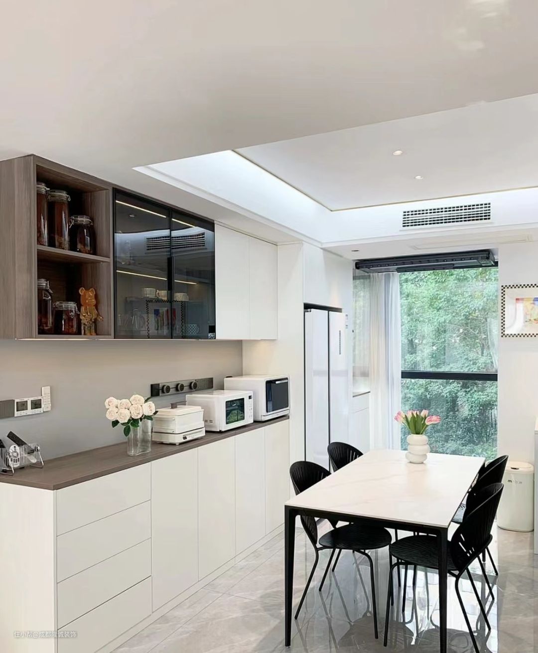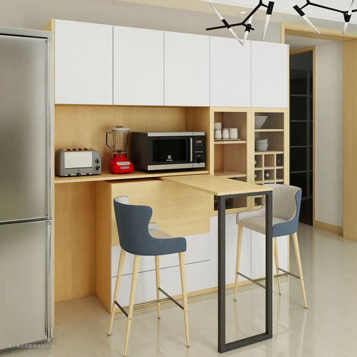 当餐厅空间较大,且需要较多储物空间,想要做中西厨的,就可以选择带操作台的整体柜,储物空间更大,方便储存更多物品。