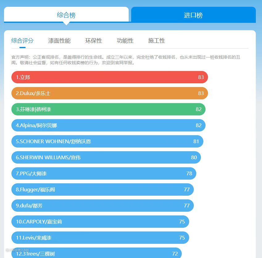 据我个人多年经验,特别是对于新手装修的小白,想要避免踩坑和省心,建议直接选择国内排名前三的乳胶漆品牌,大众使用出来的品牌才是最放心的品牌!