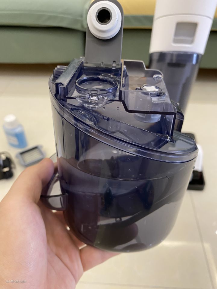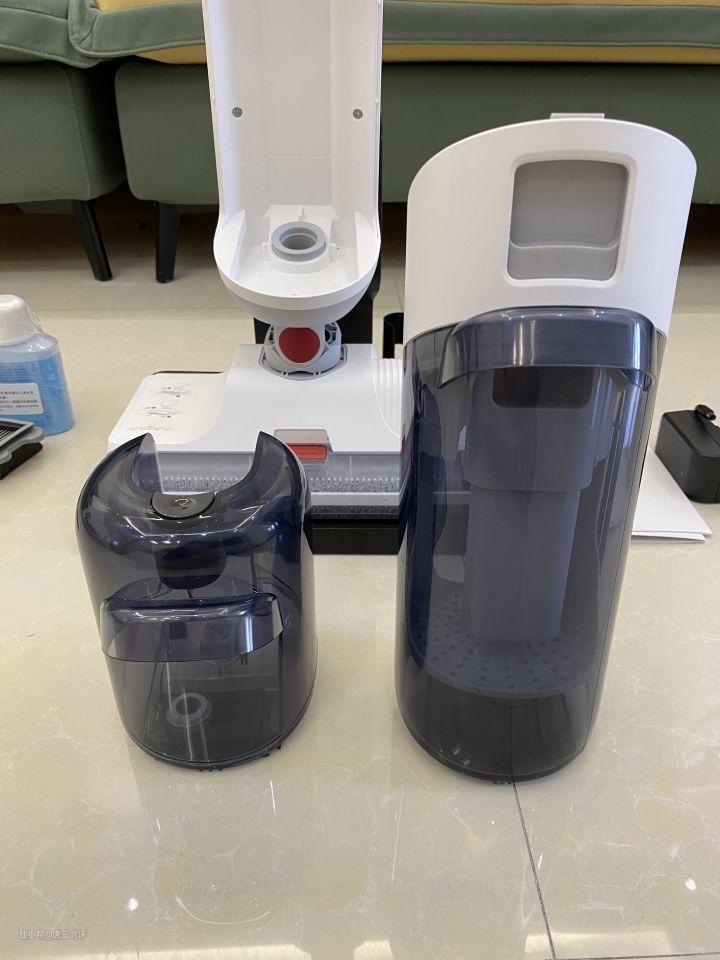 (3)主机储水箱、污水箱 接下来我们看看洗地机最重要的部分之一:储水箱和污水箱!!储水箱850ml超大容量的!污水箱600ml也够用!