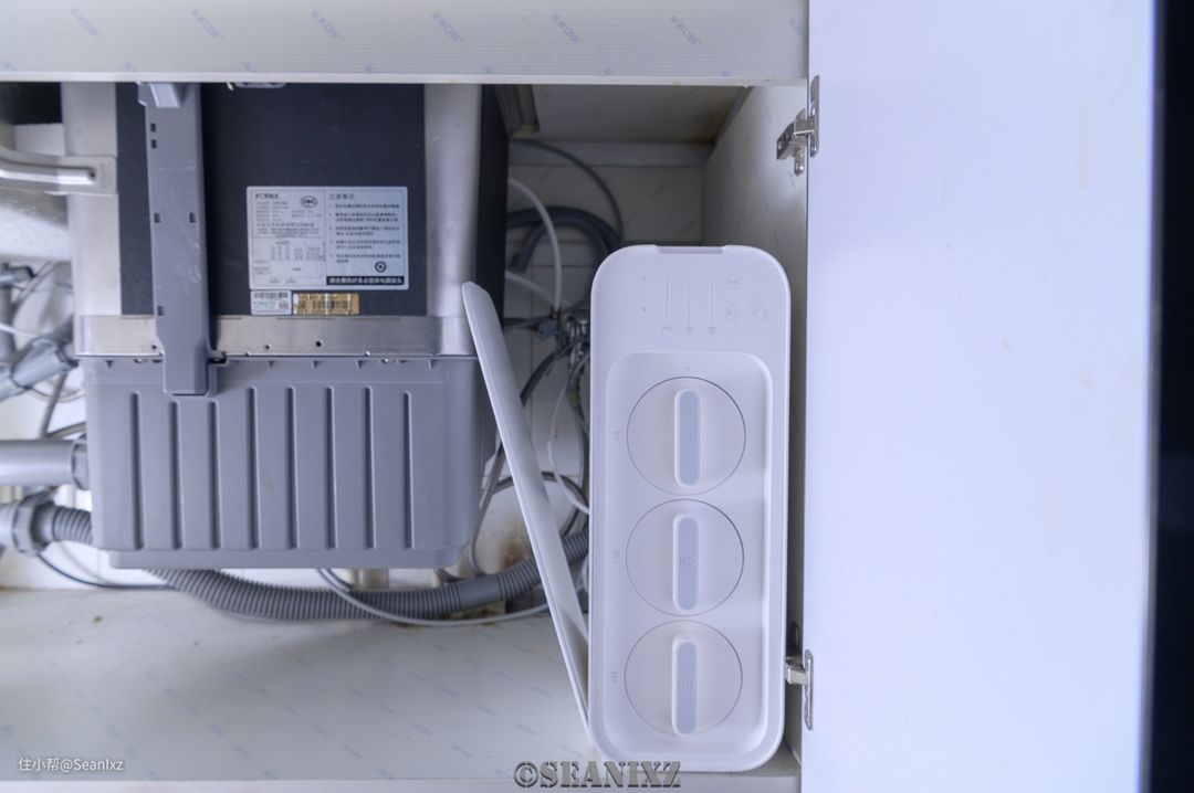 安装方面很简单,作为理工男分分钟搞定了,接好进水、纯水、废水三根管子就行了,不过废水管上有个细节,有个废水塞的配置需要注意一下,否则无法正常工作,应该是个节流阀的功能。