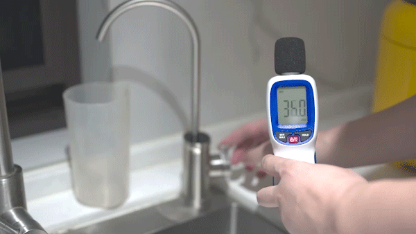 环境噪音35dB,打开水稳定后噪音在47dB左右,基本上是水声,没有很大的水泵工作声,对生活无影响,半夜家人起床喝水不会影响到其他家人在卧室休息。