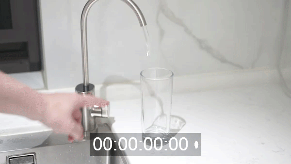 同样的方式,200ml的水杯,接满一杯水的时间从打开龙头开始为4秒,去掉开启时间也基本符合2秒一杯水的使用体验。