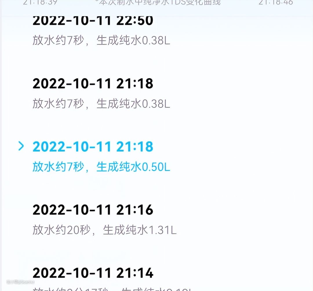 同时在记录里可以看到0.5L水的时间是7秒,细微的差别在于刚开打龙头时的一个启动时间,二者应该是一致的,流量确实比较大。