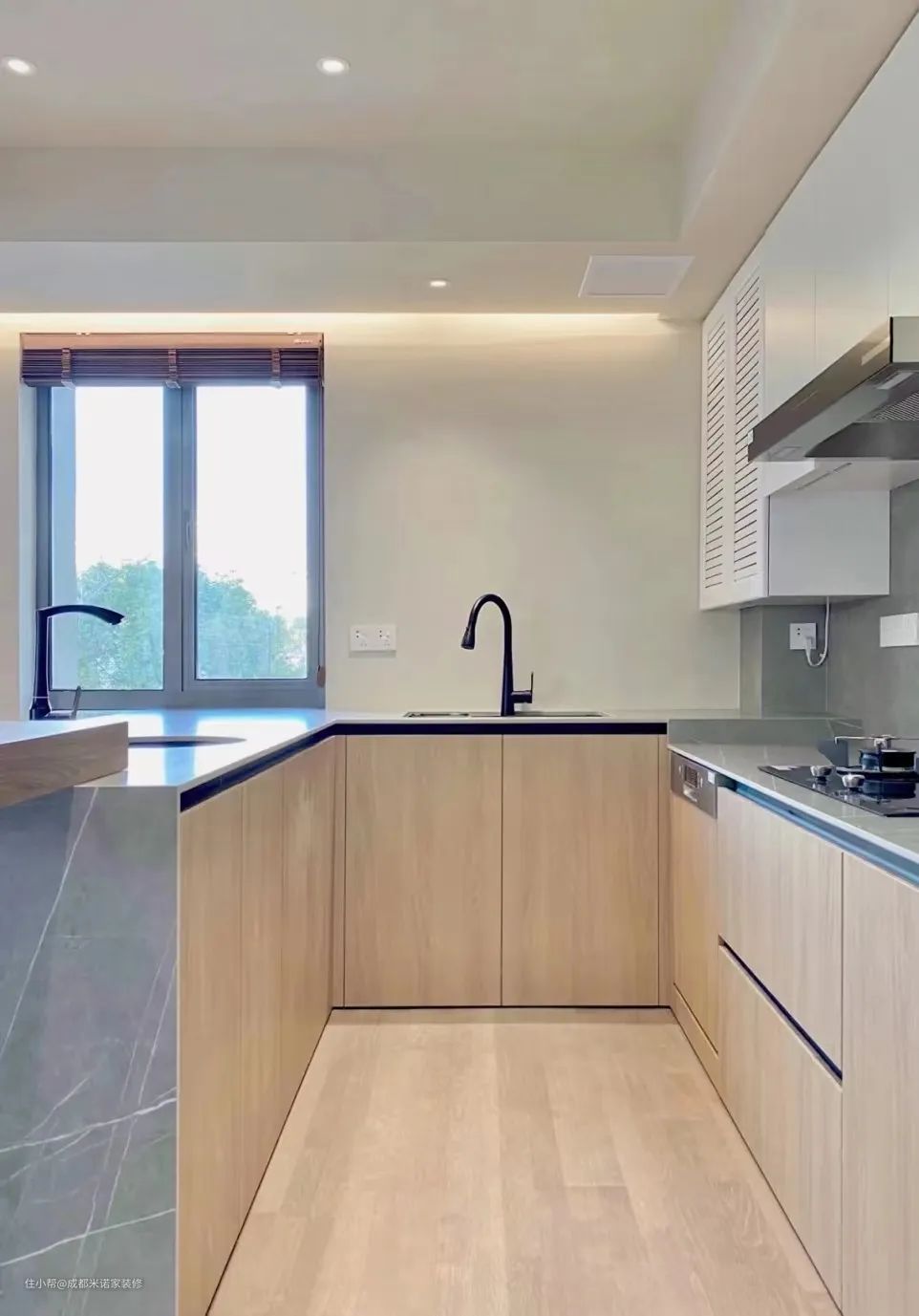 比如厨房的台面设计就直接影响到下厨的幸福感。想要有一个好的,方便又舒适的操作环境,台面的设计一定要合理。可根据不同功能动作需要,台面设置不同的高度,做成高低台面。