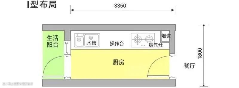 “一字型厨房”即长条状,水槽、操作台、灶台在同一个台面上,水槽和灶台呈“一字型”排开的厨房。