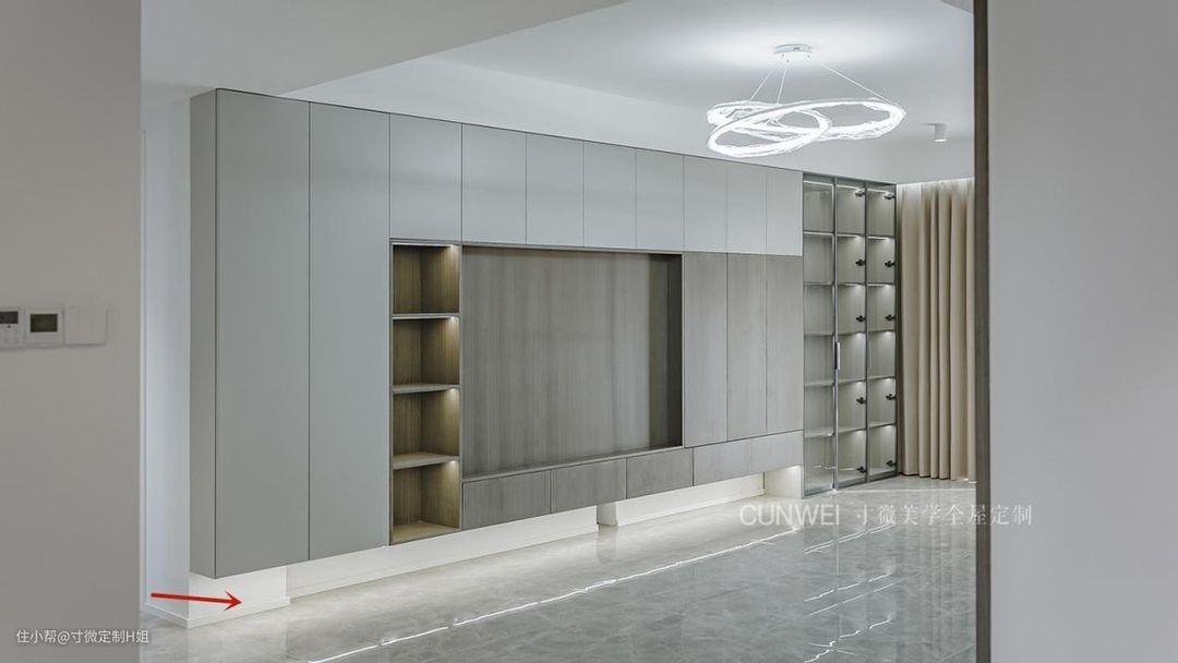 整面柜体底部留出空隙,打造“悬空”的视觉感受,更有艺术氛围。