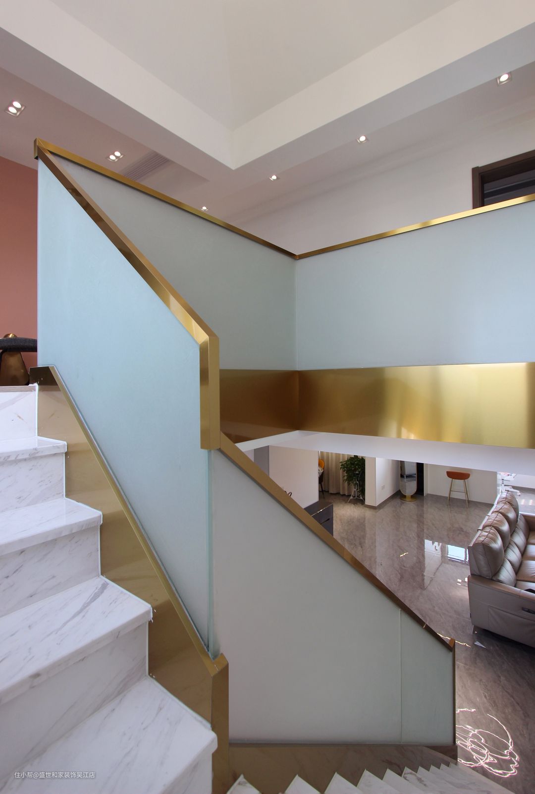将上下两层楼打通,设计楼梯,空间在经过合理的规划之后顺畅地连接。大理石台阶耐磨、防滑、天然的纹理十分美观。