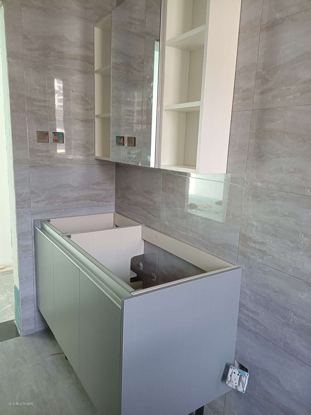 灰色浴室柜不仅颜值高,而且耐脏,方便打理;浴室柜在选购时五金件尤为重要,例如合页,水龙头一定要选304不锈钢,经久耐用,不易生锈。
