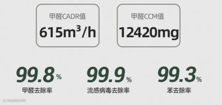 颗粒物CADR(该数值代表净化效率)实测每小时1500立方米,甲醛CADR实测每小时1000立方米,几乎是现阶段你在同价位空气净化器能看到的最高水平。