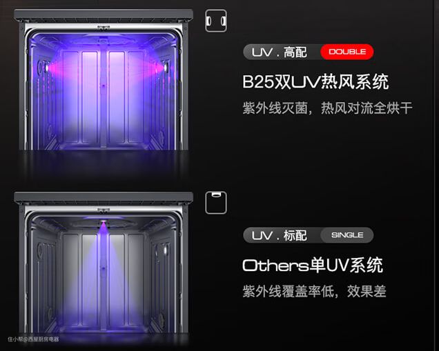 ①余温(冷凝)烘干:被动式,主要靠洗碗机内部的高温自然蒸发,效率低些,烘干效果一般,一般搭配亮碟剂来加速干燥。速度慢、效果一般,而且舱内不适合存放餐具,容易滋生细菌。