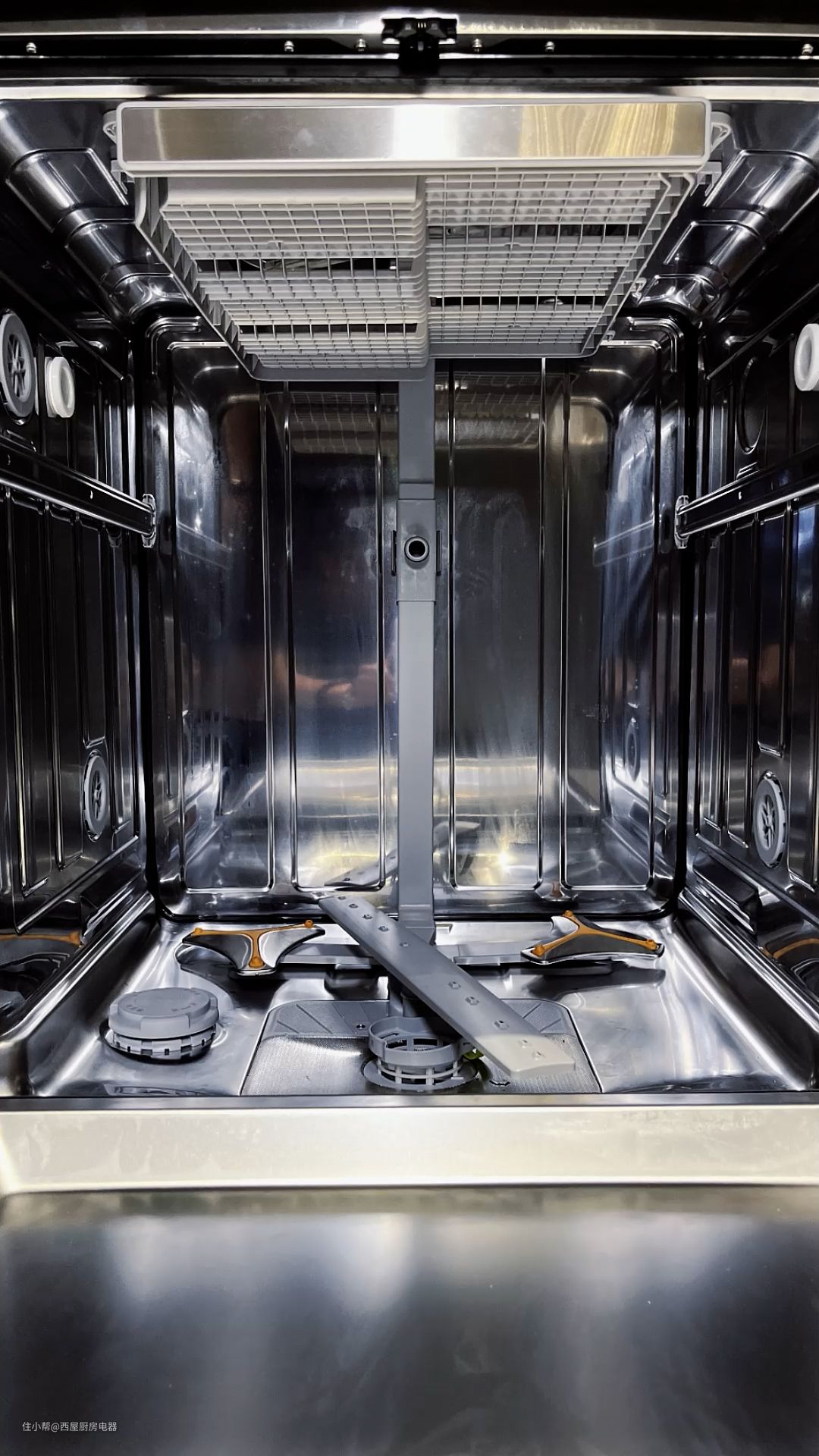 ②热交换烘干:被动式,完成洗涤程序后,腔体内的温度较高,在腔体两侧通冷凝水,与洗碗机内部形成温差,加速水汽蒸发,提高烘干效率的作用。