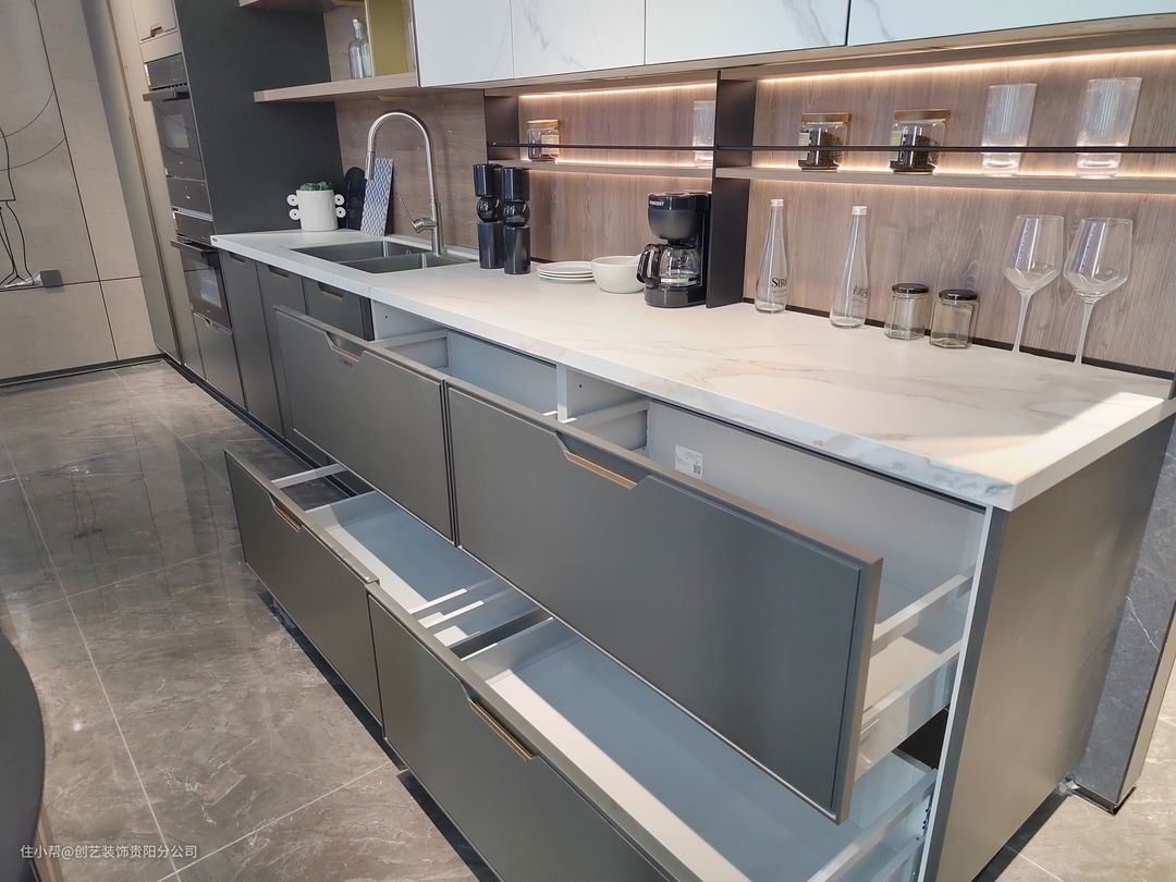 Tips:抽屉中可以安装反弹阻力器,不用弯腰,用脚一抵就能轻松打开。