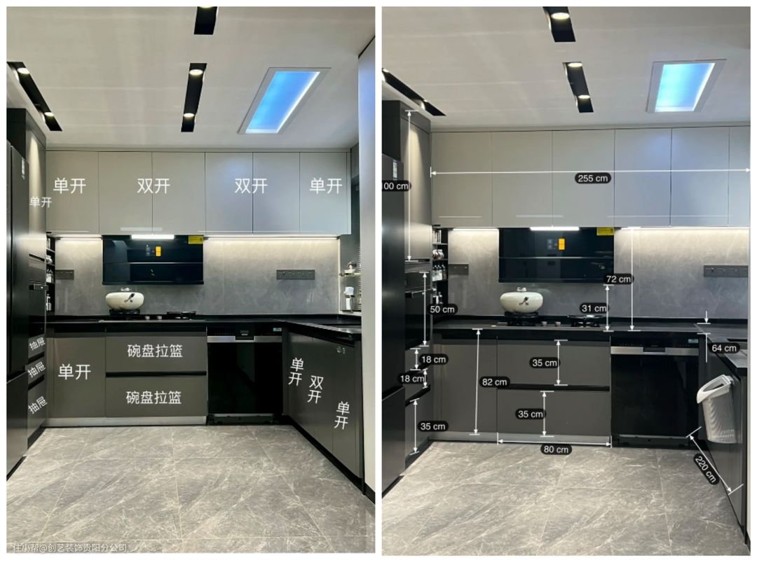 ▪️ 颜色:吊柜暖白,下柜炭黑