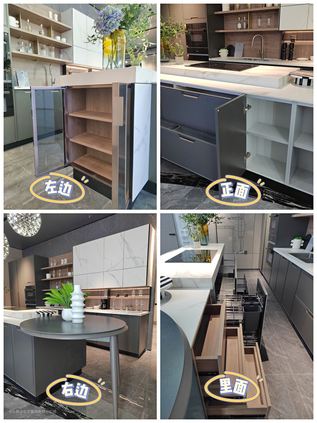 下面的橱柜内存放米面粮油、小家电、锅具
