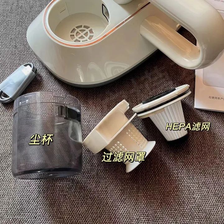 除了拍打、吸力和滚刷,我们还得关注一下过滤系统。往大了说,除螨仪像一个小吸尘器,所以,多层过滤和气尘分离同样很重要。