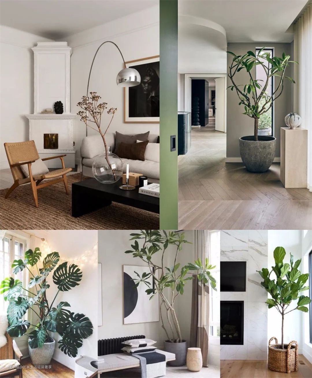 说到自然材料,那不能不说到各种绿色植物,尤其是阔叶植物和干枝,能够为空间设计带来生机和惊喜。