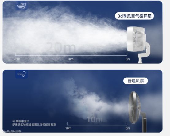 从外观上,可以直接看出普通的电风扇扇面比较大,扇身很轻薄,风力相对弱,只能局部感受到吹风,超过5米范围之外基本起不到任何作用;循环扇的风道被加长,风距能达到10-20米左右,就算是在卧室也能感受到来自客厅的凉意,真正意义上实现“空气联动”。