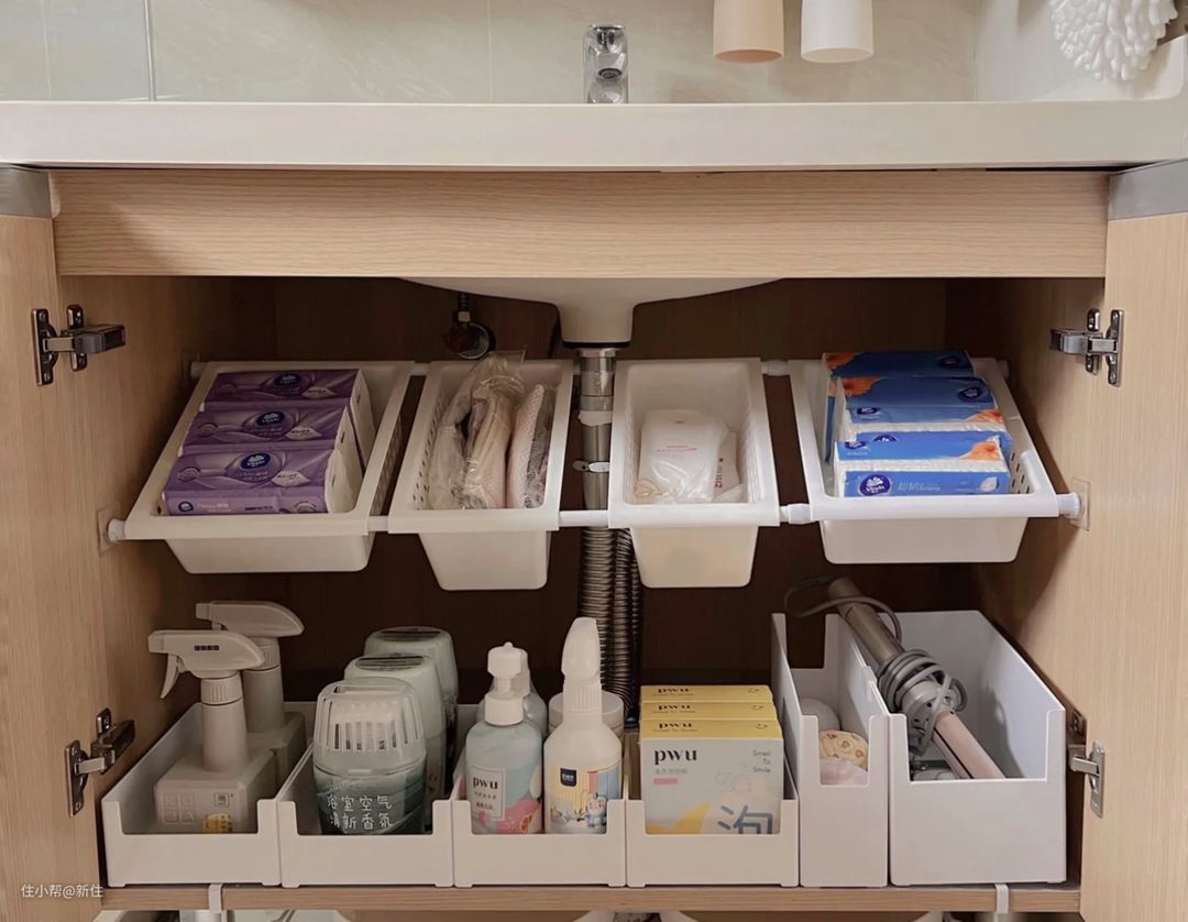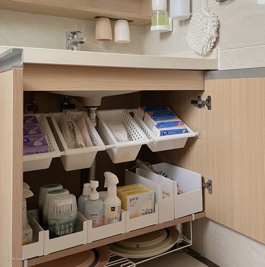 篮子的尺寸、数量可以根据自家的水盆柜的宽度选。
