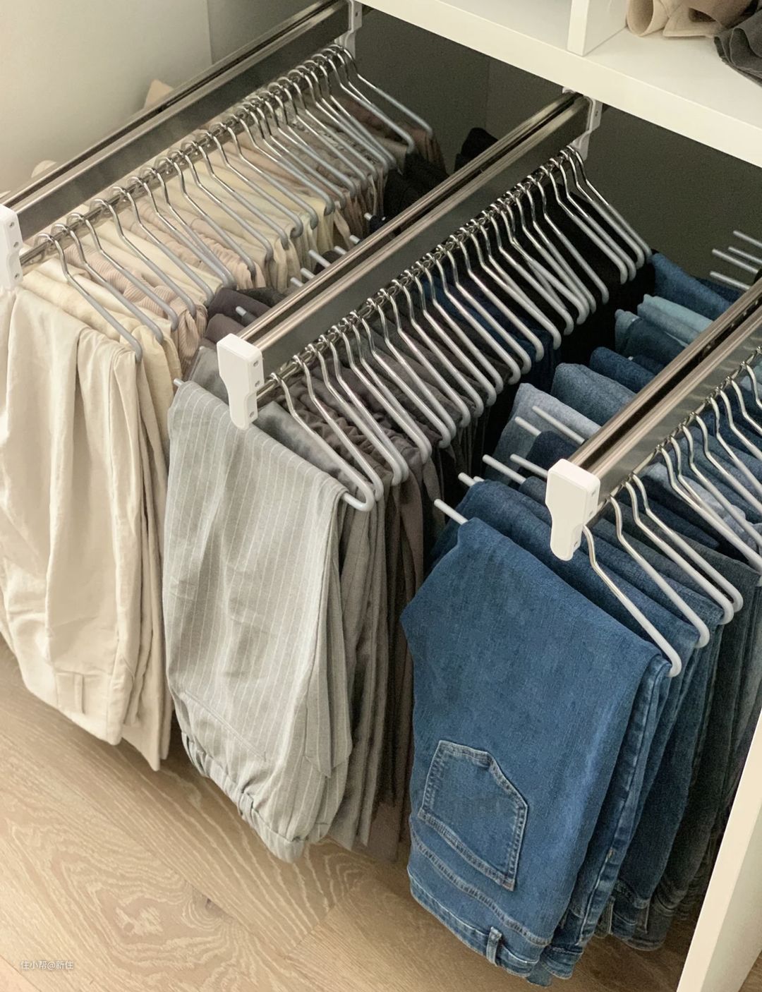 老公,则更喜欢的是:挂起来整齐的感觉以及取裤子时候从容。