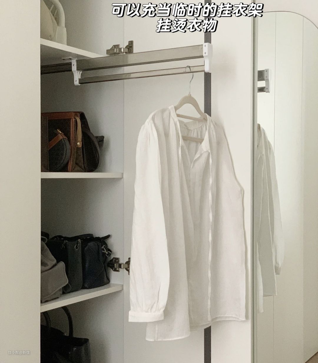 这条滑轨,专门用来挂烫衣物,搭配小号的手持挂烫机,使用起来很方便。