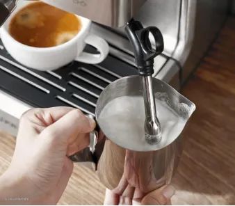 蒸汽棒的压力影响奶泡打发的质量,压力越大,温度越高,奶泡打发的时间就越短,进入牛奶的水分就越少,绵密程度就越好,奶泡质量就越高。