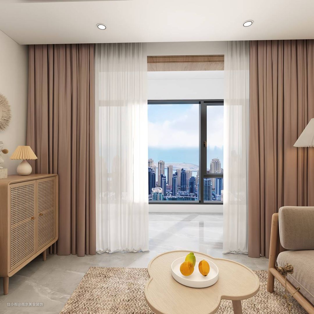 (2)窗帘可以搭配以浅色的奶油色系,沙发原木日式的沙发+搭配原木的装饰画灯具小的挂件凸显原木的风格。