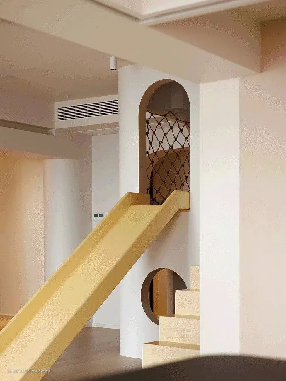 这样一来,二房便成为了「三房」,想要容纳三个孩子便成为了可能。同时,由于与主卧相邻,这里也成为一个亲子空间,孩子小的时候便可以和父母在这里交流,共同成长。