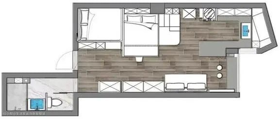 三房轻松、二房讨巧,那对于一些小户型(一室)来说,要想达到同样的效果,只能通过“压缩”来实现,即让功能更加集中。
