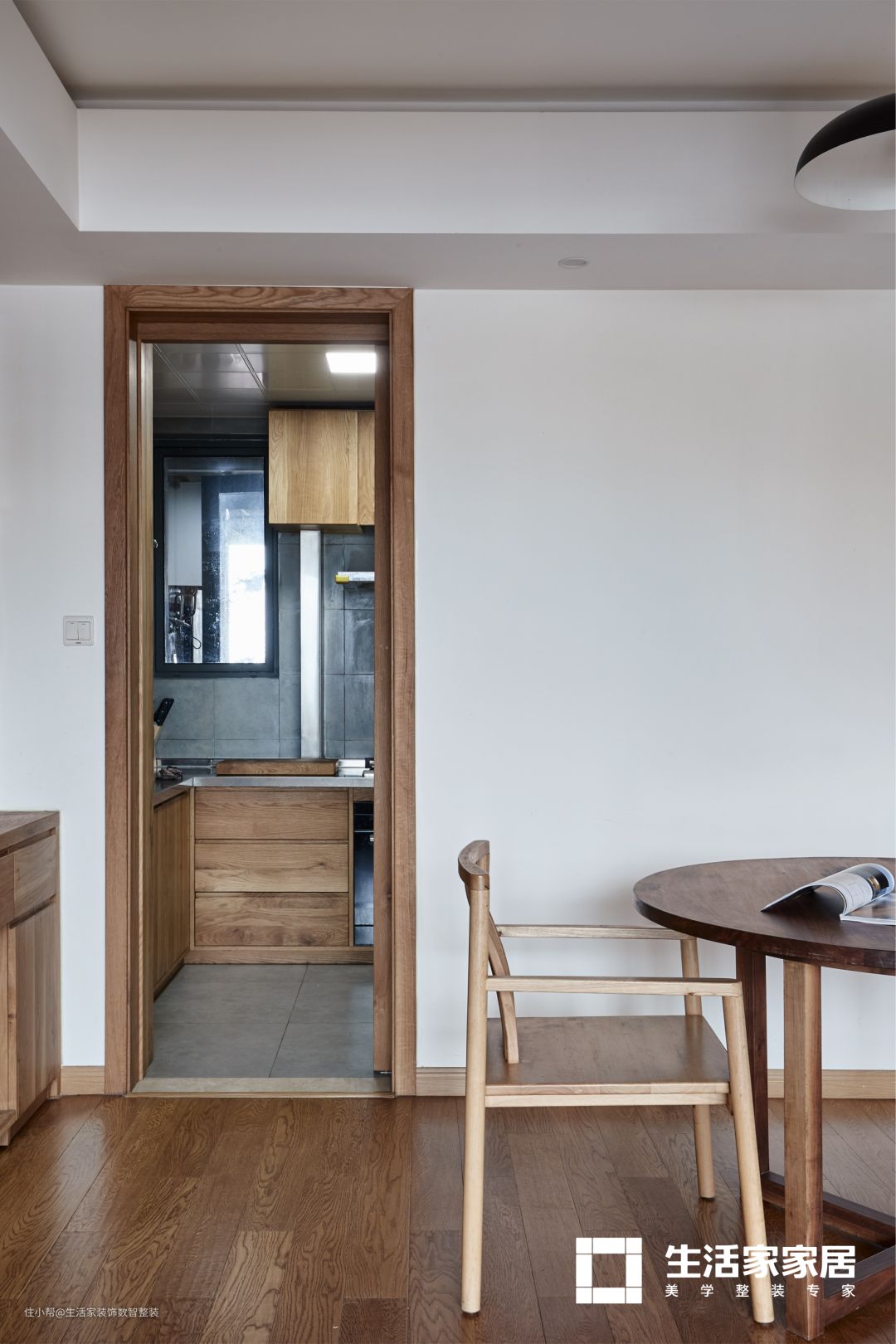 由于业主很少做饭,所以餐厅也没有以功能性为主,餐桌仅按照业主喜欢的样式挑选,忽略掉“餐桌”的仪式感,更多的是烘托整个空间。 餐厅、厨房、餐边柜紧邻,使得餐厨空间功能比较集中,动线简单明了,使用方便。