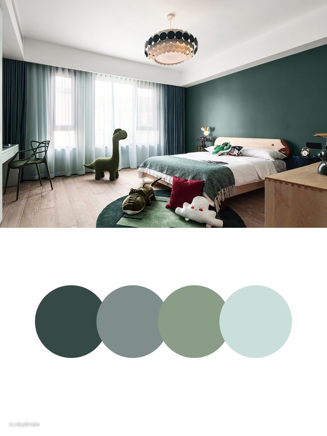 2.深色系的颜色往往用在局部做点缀作用,比如背景墙或者一些装饰画,对于整体空间会起到点睛之笔的效果,