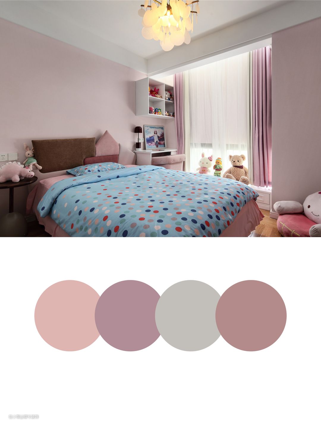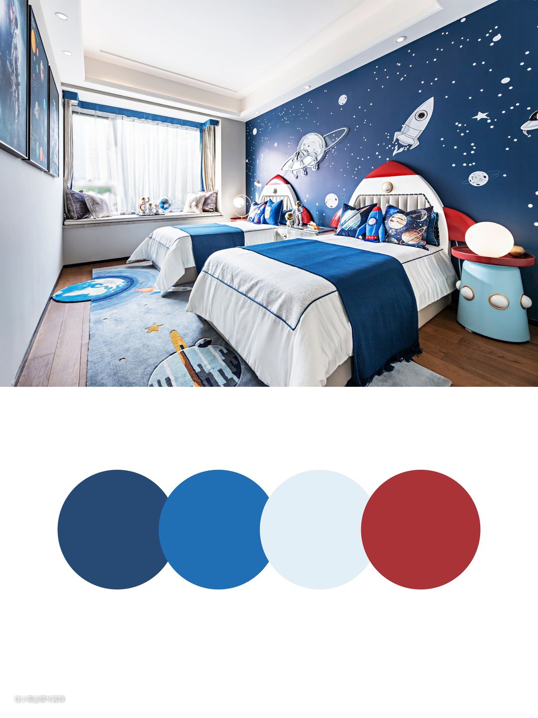 6.儿童房的色彩可以选用一些明亮活泼的色彩,搭配一些卡通元素,会使得整个空间舒适活泼,使得小朋友居住更为舒适。
