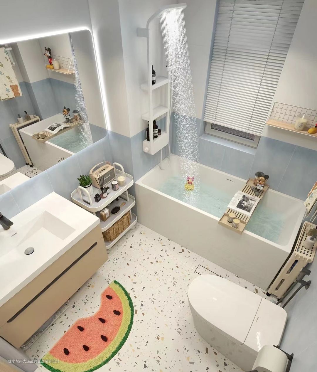 卫生间面积大于5㎡,就可以安装尺寸合适的浴缸了,太小的卫生间连干湿分离都做不到,就不要考虑浴缸了。