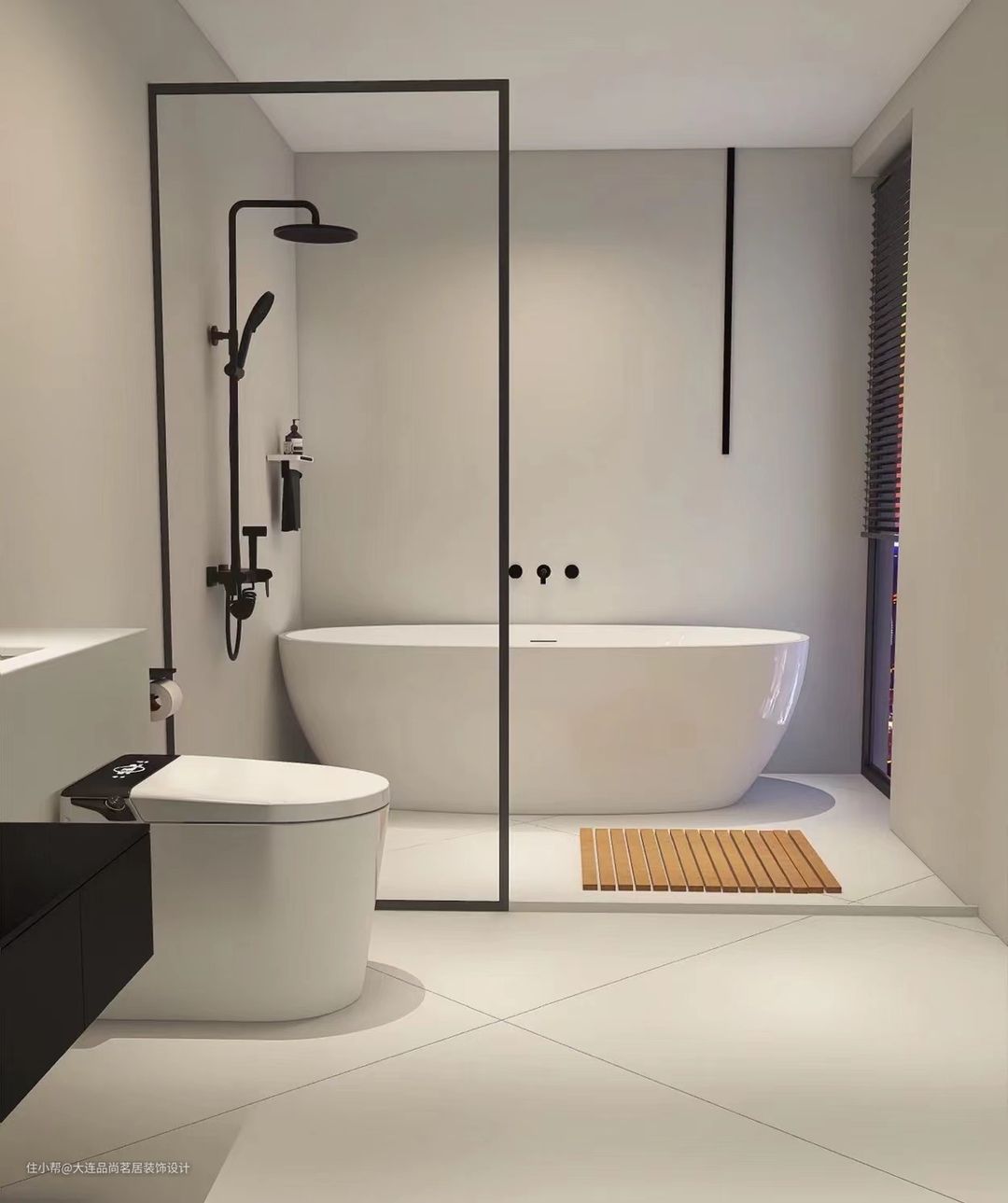 高品质的卫生间不仅要做到干湿分离,还要做到每个空间物尽其用。就拿淋浴区的设计来讲,很多小伙伴会希望是淋浴和浴缸结合的设计。让自己让闲暇之余也可以享受泡澡的惬意和舒适。