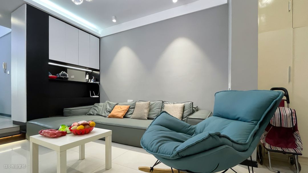 - 沙发是目前比较流行的豆腐块沙发,板正的造型屹立于客厅C位,长3.8m,沙发简单干练的线条与地砖的融合,温馨感和高级感如被搅拌了在一起。豆腐块+摇摇椅的组合,真的太太太喜欢了,不仅高颜值,坐感也太绝了。