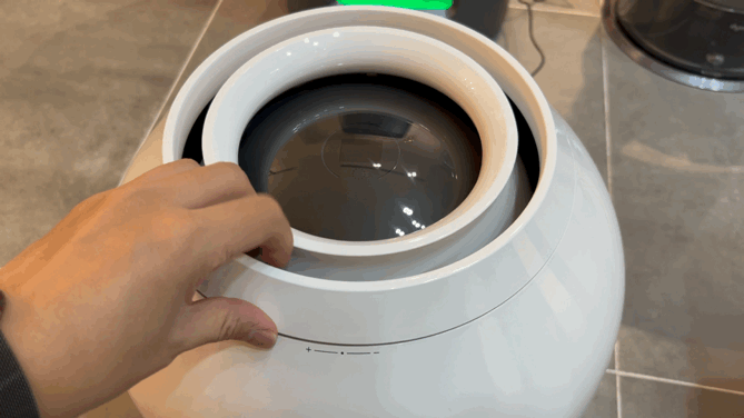 由于这种旗舰型的加湿器基本上都搭载了高性能的风机用来保证将水蒸气送到更远的地方,所以在机器周围还是可以感觉到阵阵凉风的。尤其是戴森还进行了出风口可调设计。