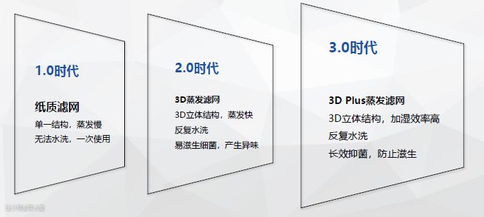从最开始的纸质滤网,到现在的由涤纶(PET)+丙纶(PP)+锦纶(PA)高精度激光切割混编而成的3D高分子滤网