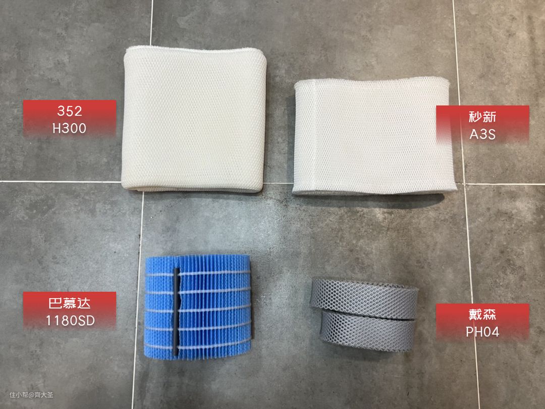 可以看到秒新和352的蒸发滤网相比其它几款首先从尺寸上就占据了优势。