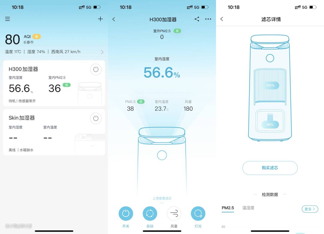 为什么要强调离机监测的重要性呢,无论是加湿器还是空气净化器,机器周围的空气是最先被加湿/净化的,也是质量最好的,只检测机器周边的空气质量从而控制机器的运行岂不是成了机器的自嗨?略胜于无,但绝对不是最优解。
