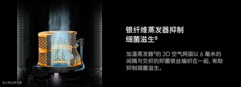 戴森是将抑菌银丝编制在蒸发器内,抑制细菌滋生;