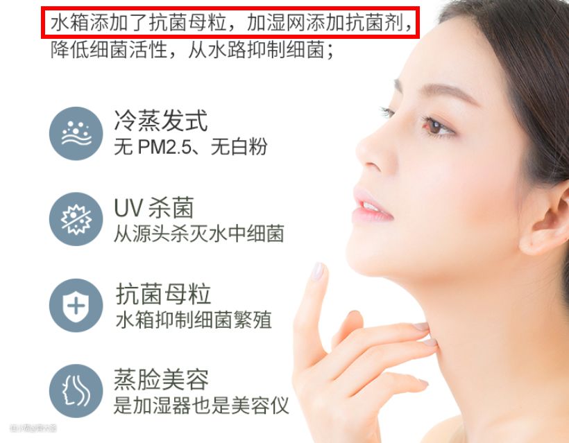秒新则是在水箱中添加了抗菌母粒,加湿网添加抗菌剂;