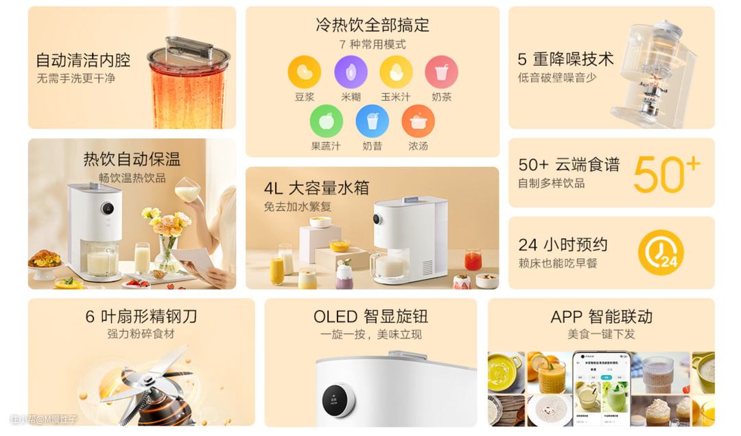 这不小米新发布了智能自清洗破壁料理机,可以自动清洁内腔,5重降噪技术,4L大水箱避免频繁加水,热饮自动保温,米家智能app接入,还支持50+云食谱,智能预约,解决了传统破壁机难清洁,噪音大的问题,具体体验如何让我们来看看吧。