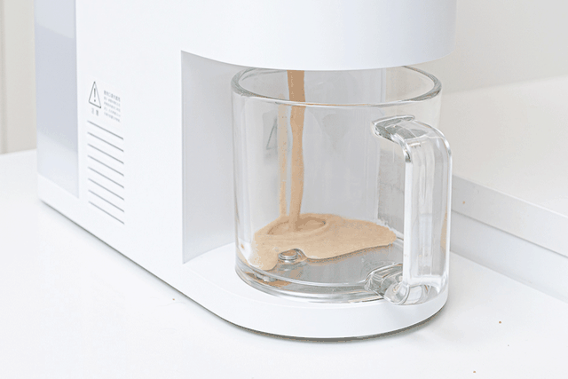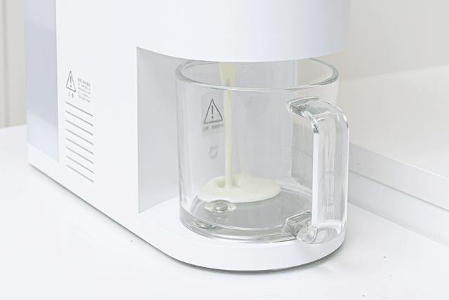 完成后,豆浆会自动落入接汁杯内,豆浆丝滑cun'xiang,豆渣也很细可以直接吃。