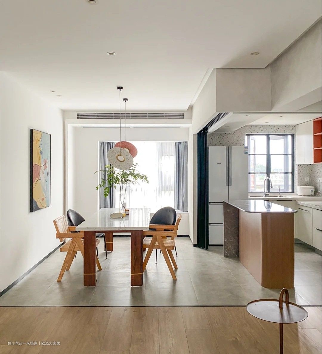 由于现在的国产抽油烟机已经很给力了,所以餐厨一体化的开放式厨房布局越来越受欢迎。打掉厨房和餐厅之间的墙,把厨房的部分空间腾给餐厅,可以显得空间更加开阔。