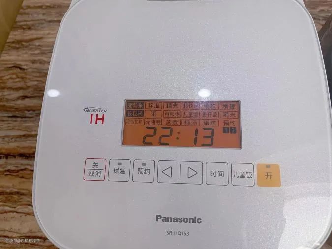 松下SR-HQ153有8个按键,开关键分别在一排按钮的最外面,还有保温、预约、时间和儿童饭功能,更多的功能也是通过中间的左右键进行选择,按下最右侧黄色的开键开始,整体操作上也不是太复杂。
