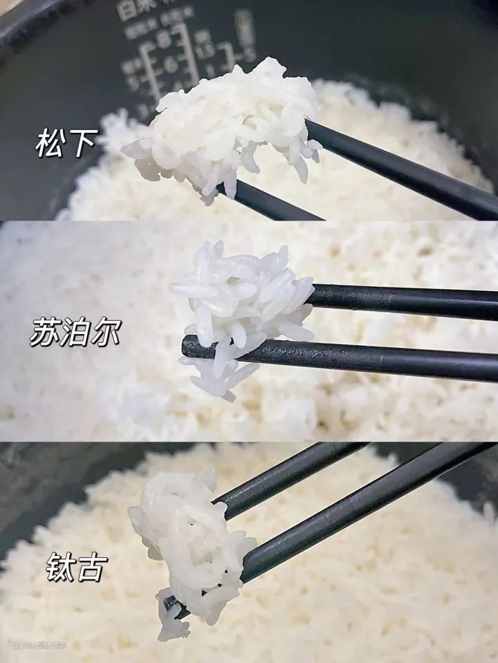 在口感方面,我个人认为松下相对稍微软一丢丢,钛古比较有嚼劲,苏泊尔的最香甜。